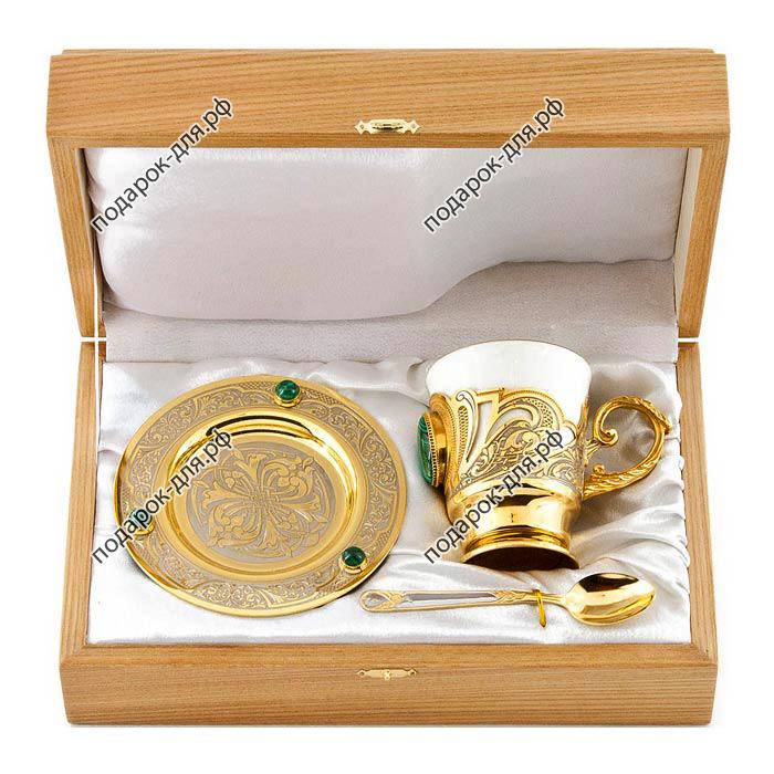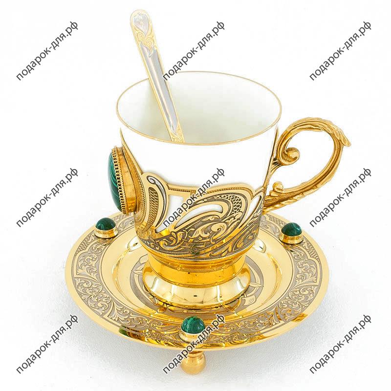 Малахит, фарфор, латунь, никель, золото (999,9).