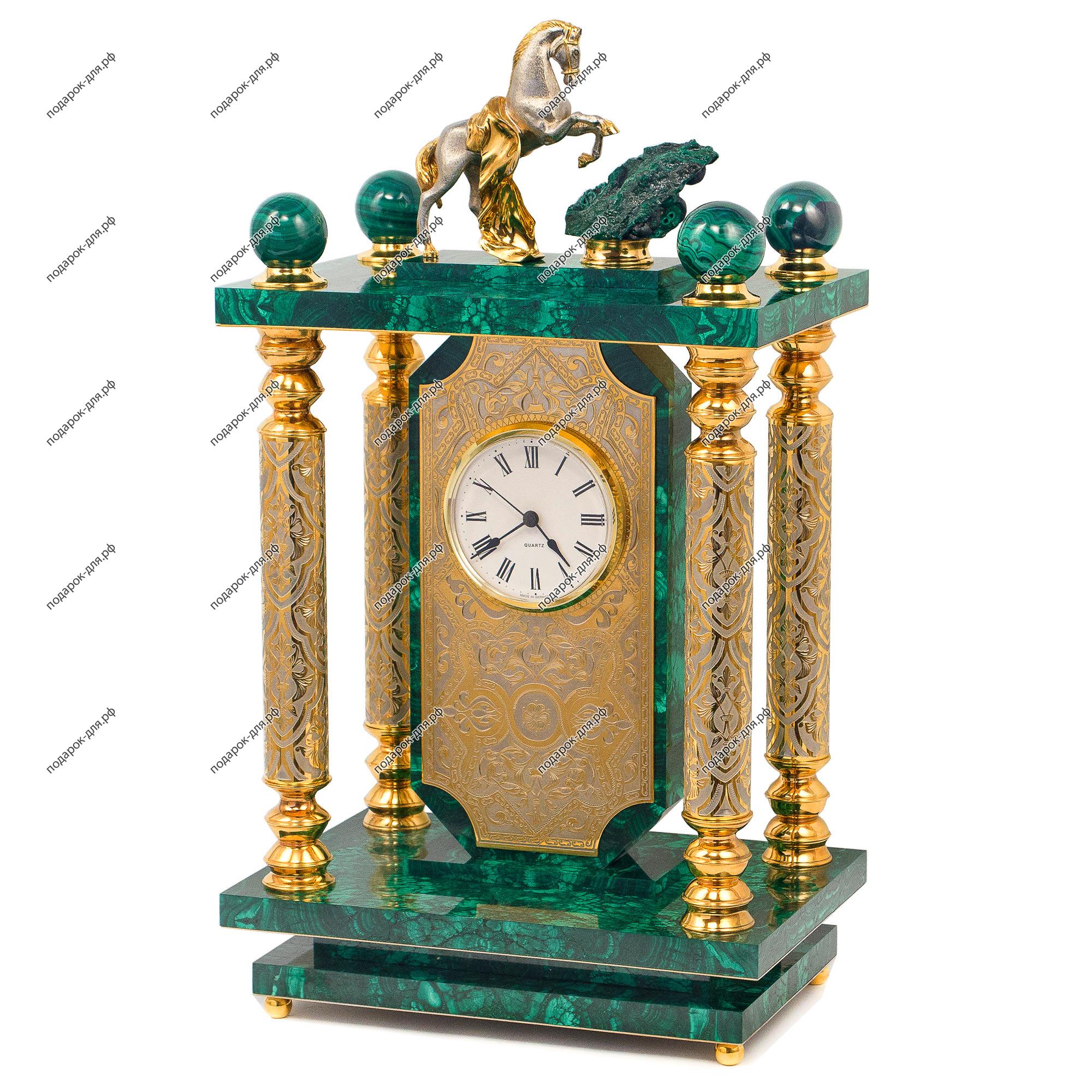 Часы малахитовые «Конь с попоной» №2