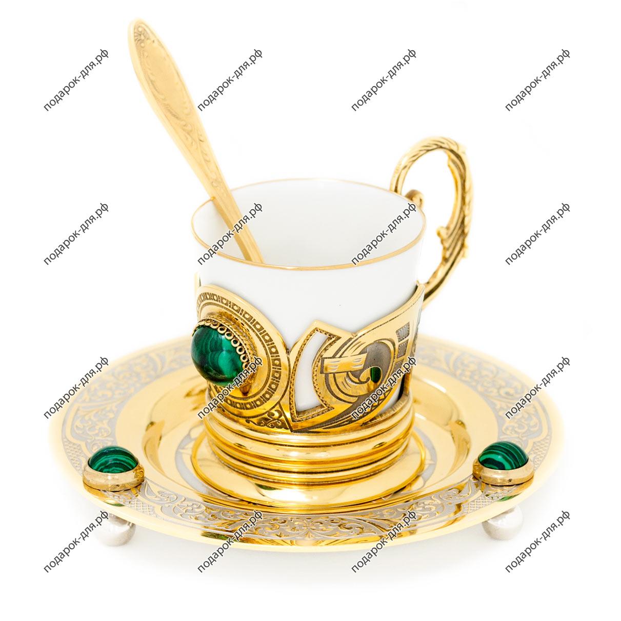 камень малахит, фарфор, латунь, никель, золото (999,9).