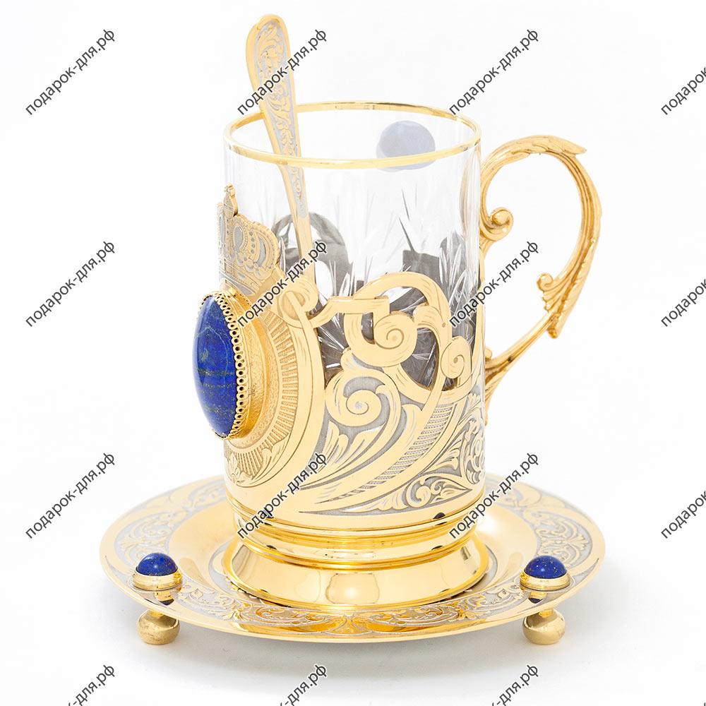 Камень лазурит, хрусталь, латунь, никель, золото (999,9).