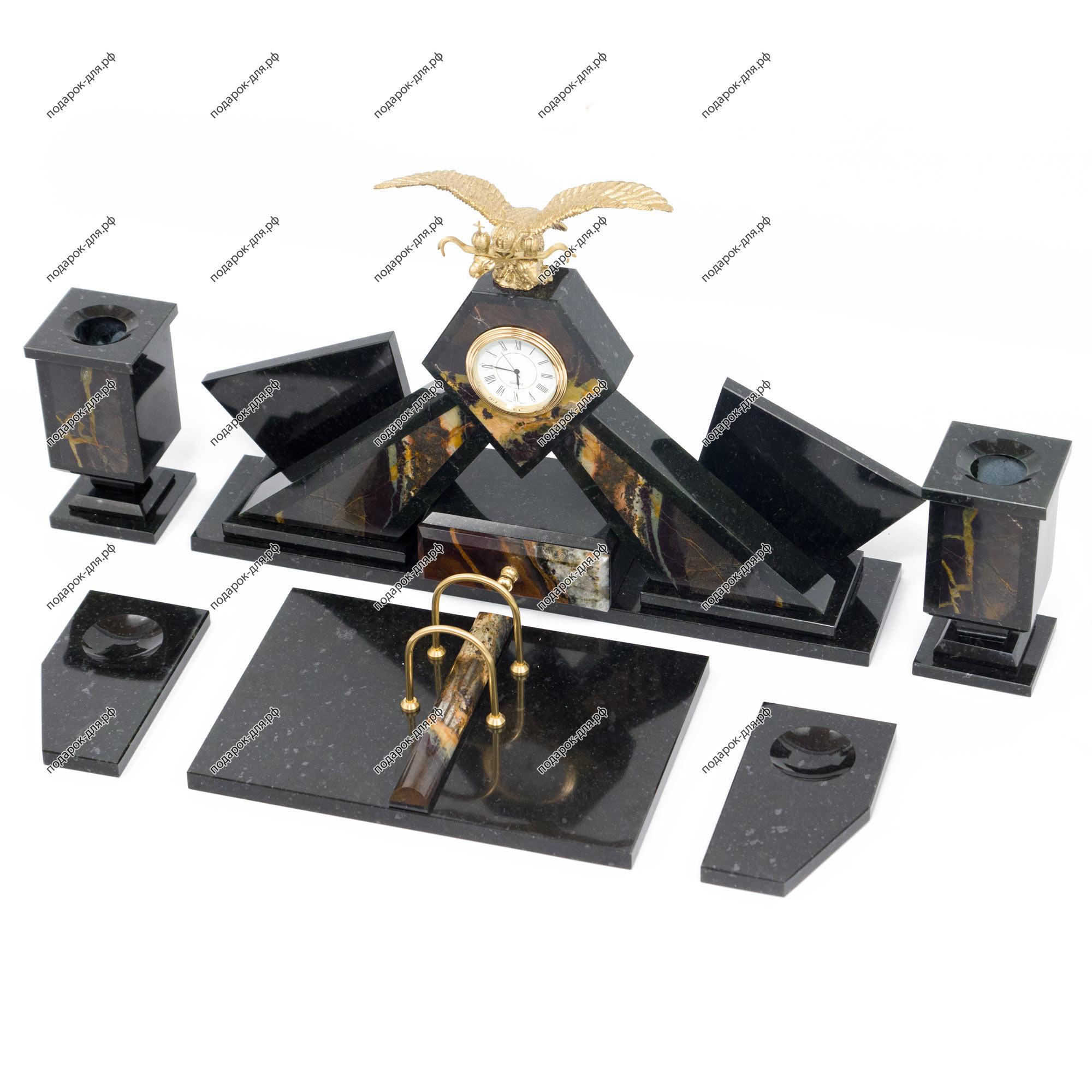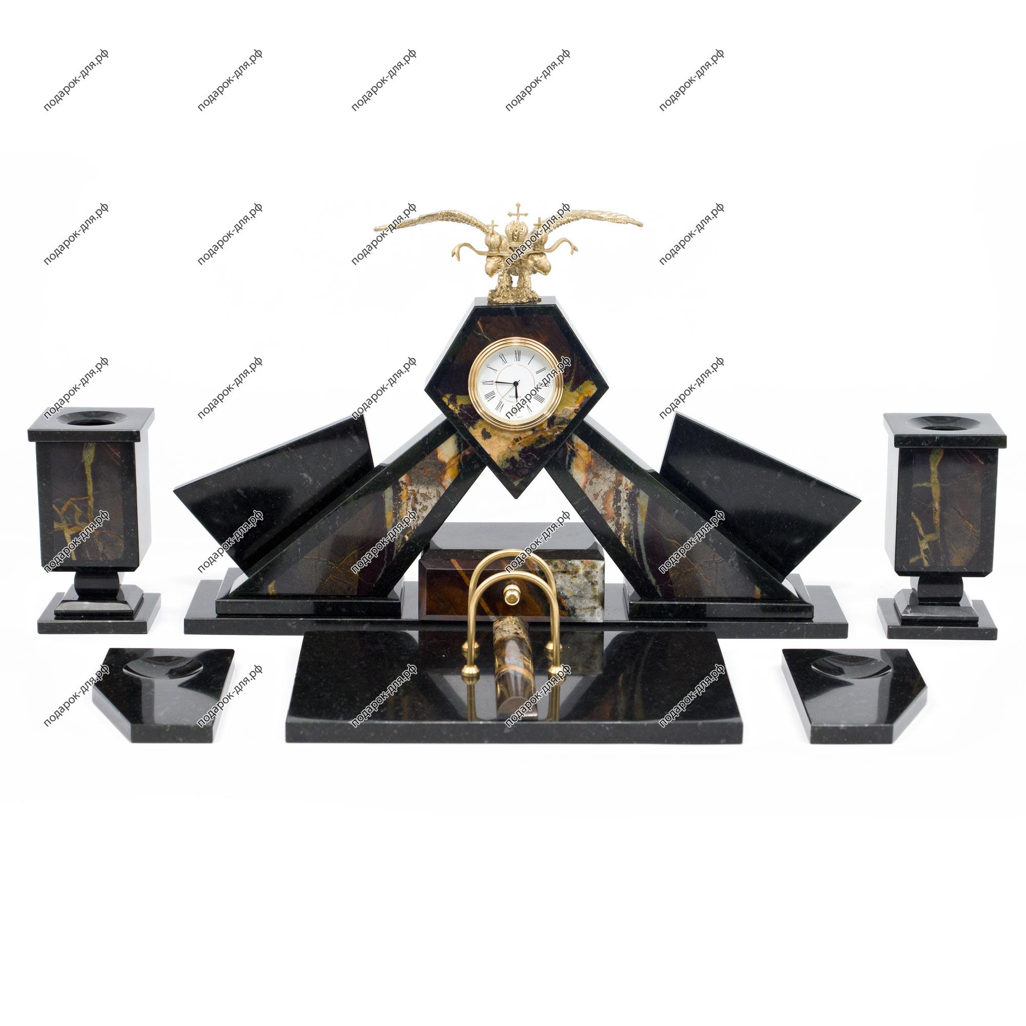 Настольный набор «Двуглавый орел» офиокальцит