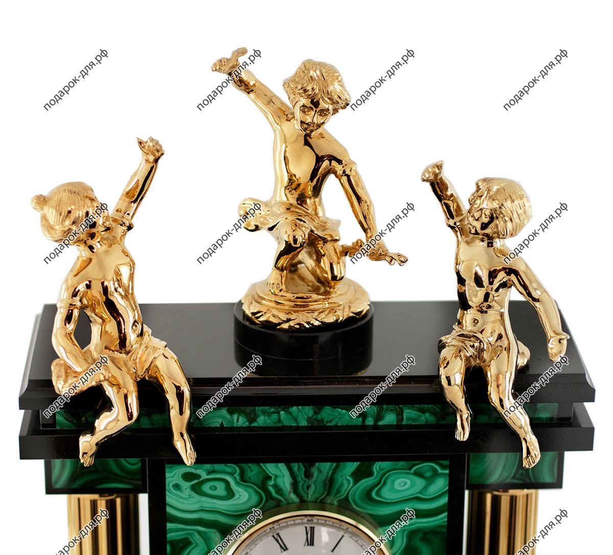 камень малахит, долерит, бронза, никель, золото (999,9).